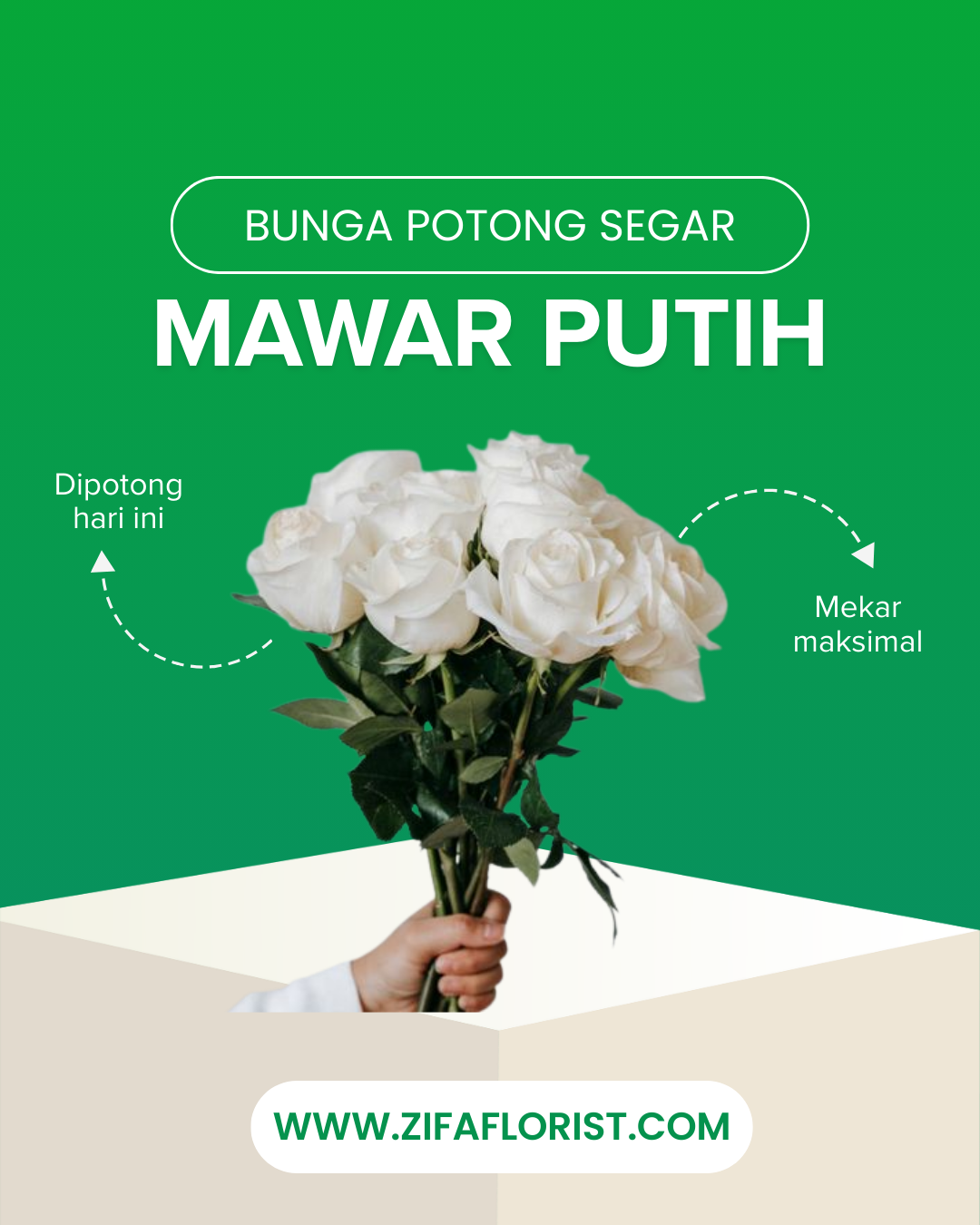 Mawar Putih Potong ( Tangkai Pendek)